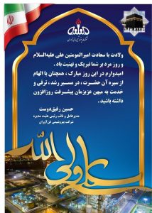 پیام تبریک حسین رفیق دوست مدیر عامل و نایب رئیس هئیت مدیره شرکت پتروشیمی فن اوران به مناسبت میلاد حضرت علی علیه السلام و روز پدر