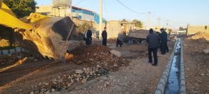 بازسازی و جوی و جدول گزاری خیابان شهید مطهری شهر قلعه خواجه در حال انجام است