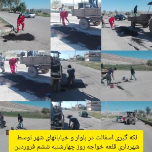 شهردار قلعه خواجه با اشاره به برخی فعالیت های این شهرداری در ایام نوروز گفت ؛پاکسازی و نظافت معابر و میادین و پارکها، لکه گیری و آسفالت معابر و خیابان ها، خرید وتوزیع چهل عدد مخزن زباله در سطح شهر،آب گیری مخازن عمومی، نصب علائم راهنمایی و رانندگی،تامین روشنایی و نورپردازی خیابان ها ،پاکسازی پارکها و فضای سبز شهرستان ،تجهیز و بازسازی سرویس های بهداشتی پارکها لاله ،هست چشمه و روبروی فرمانداری ، رنگ آمیزی وسایل بازی ، المان ها ،جداول ،دیوار نوشته ها و موانع سطح شهر ،خاکبرداری و نظافت و جمع آوری زباله ها از میادین و خیابان ها و معابر،هرس درختان و لایروبی کانالها، آهک پاشی کانالها و جوی ها،خط کشی سرعتکاه ها و موانع و…..گوشه ای تلاشهای بی وفقه پرسنل این شهرداری در این ایام بود