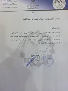 انتصاب مهندس بهرام اسدی بعنوان مشاور عمرانی شهرداری زاووت