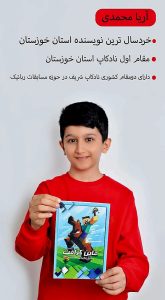 به گزارش رستاک خبر؛آریا محمدی، نویسندهای خردسال از دیار خوزستان، علاوه بر تألیف کتاب، دارندهٔ مقام اول نادکاپ استان خوزستان و دو مقام کشوری در حوزهٔ مسابقات رباتیک است.